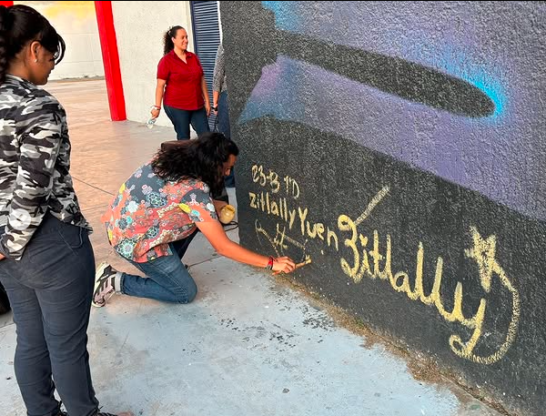 Les compartimos fotos de la inauguración del mural “Letras que arrastran los colores de la vida”.